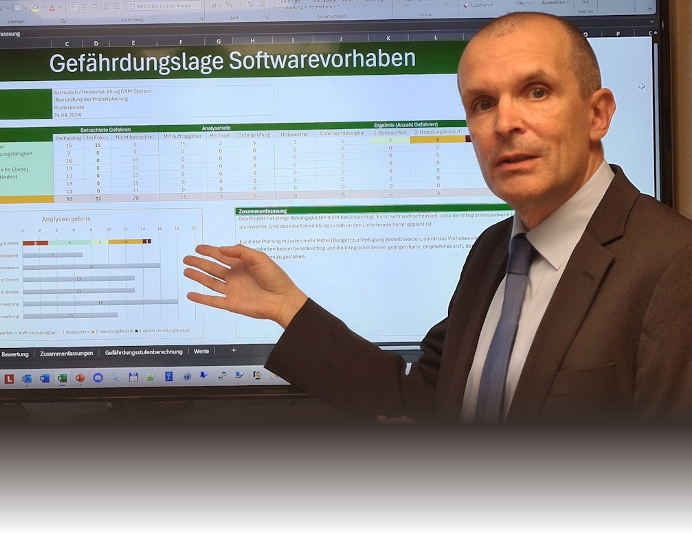 Ausgehend von meinem Gefahrenkatalog vereinbaren wir, was wir uns in einem Fitness Check ansehen. Dann identifizieren Risiken (präventiv) oder Probleme (akut), die Ihr Vorhaben gefährden.